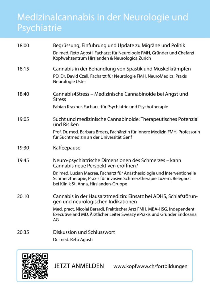 Die Veranstaltung bringt Expertinnen und Experten aus Neurologie, Psychiatrie, Schmerzmedizin und Hausarztmedizin zusammen und bietet eine fachübergreifende Perspektive auf den Einsatz von Cannabinoiden in der klinischen Praxis. Im Mittelpunkt stehen aktuelle wissenschaftliche Erkenntnisse, klinische Erfahrungen sowie der fachliche Austausch zwischen den beteiligten Disziplinen.